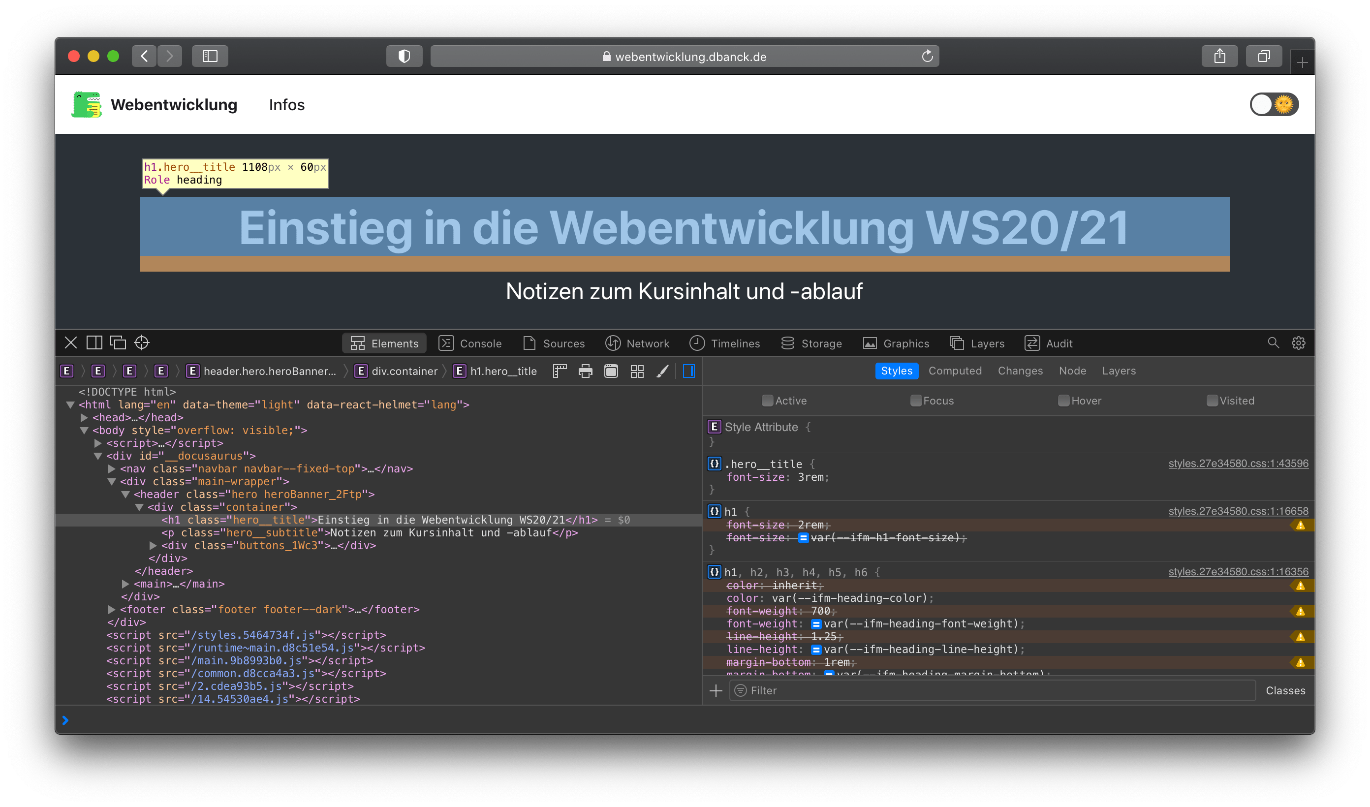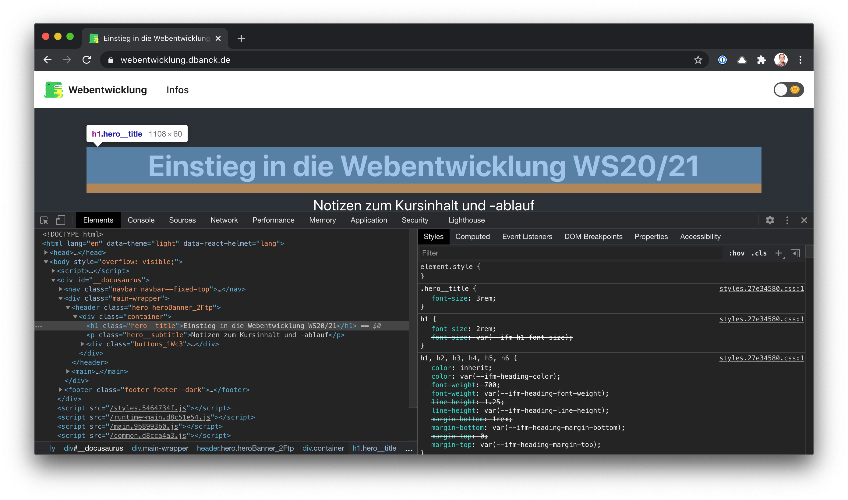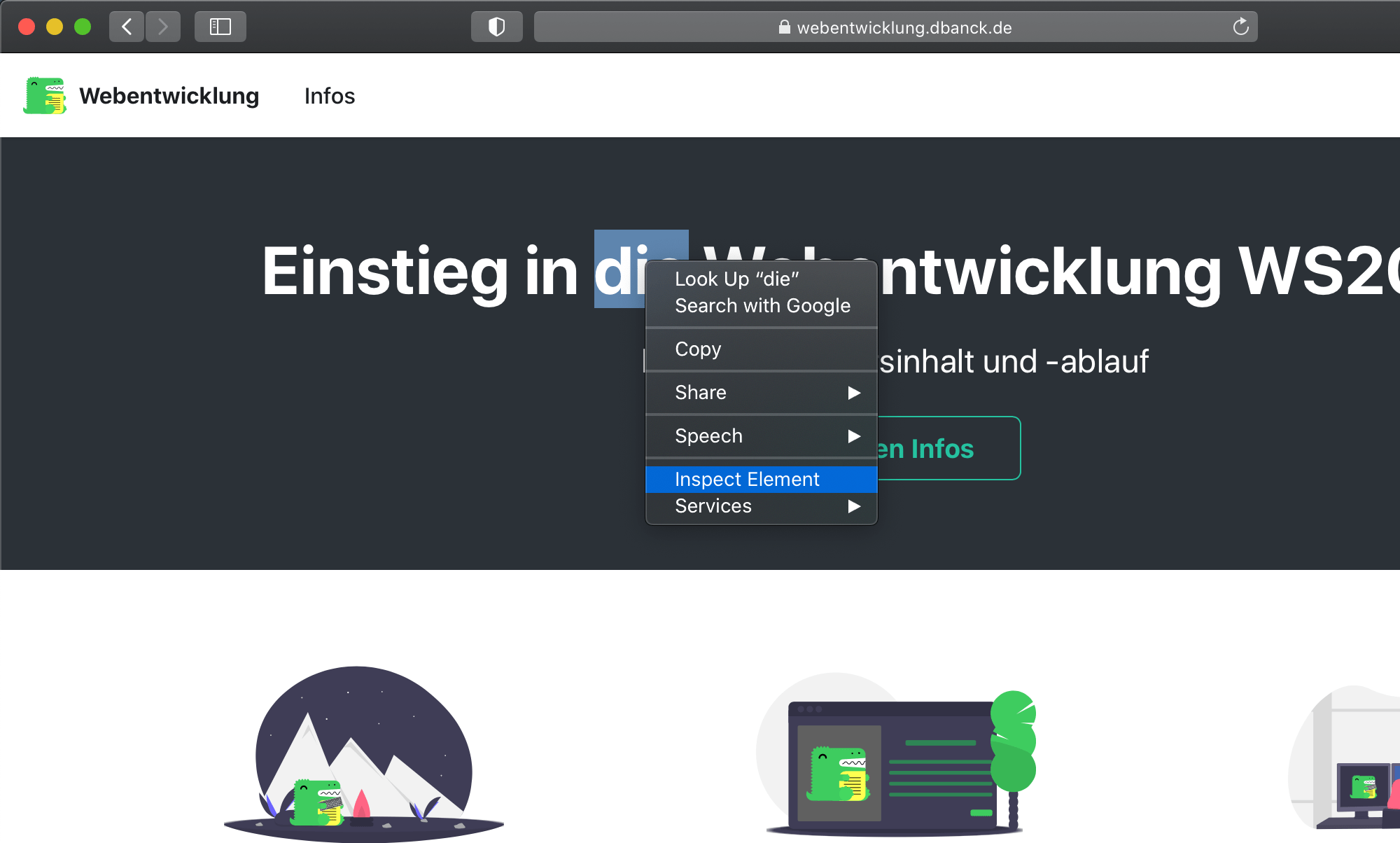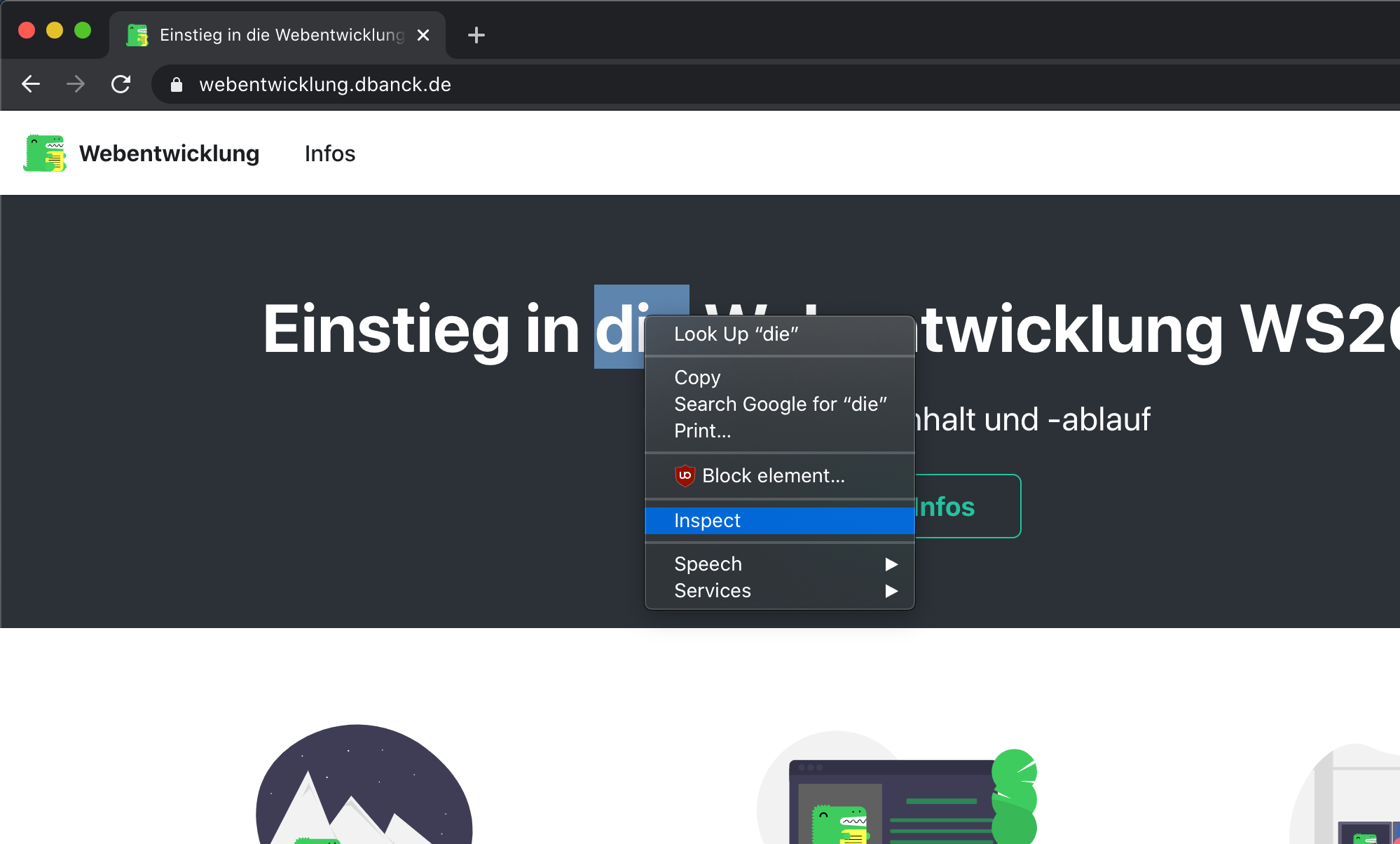 Genauso kann in Google Chrome mit einem Rechtsklick ein beliebiges Element untersucht werden...