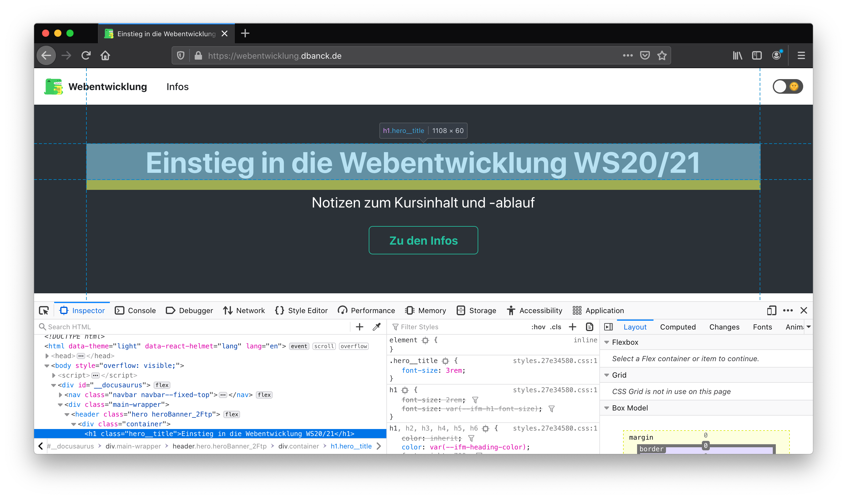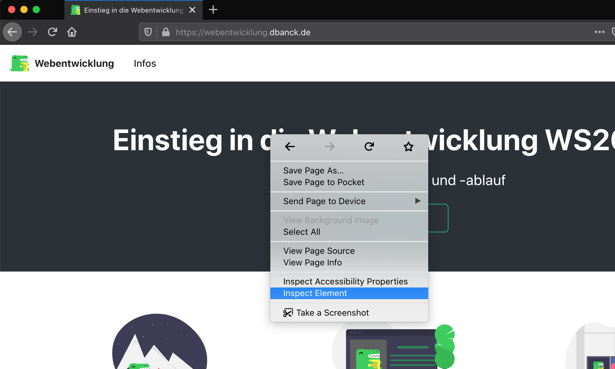 In Firefox kann mit einem Rechtsklick ein beliebiges Element untersucht werden...