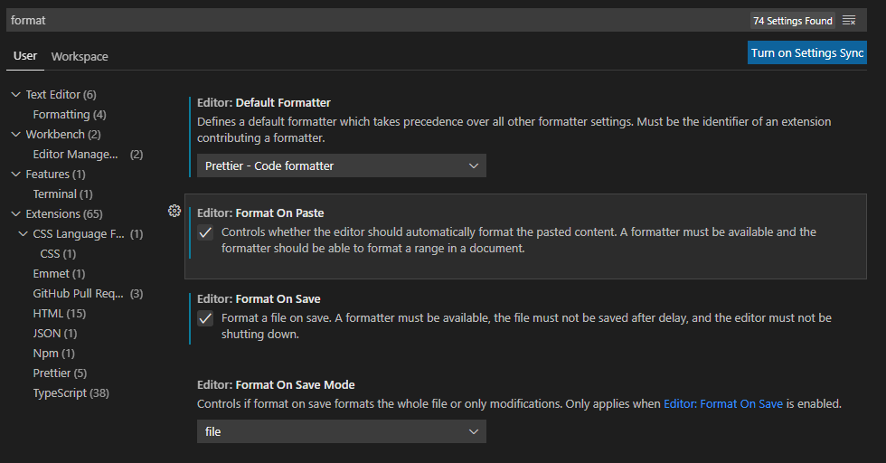 Folgende Einstellungen sollten für Prettier vorgenommen werden: